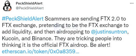 派盾:匿名黑客發行FTX 2.0 Token並包裝成FTX官方空投
