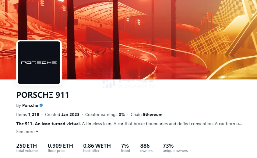 保時捷NFT跌破發行價,暫報0.909 ETH