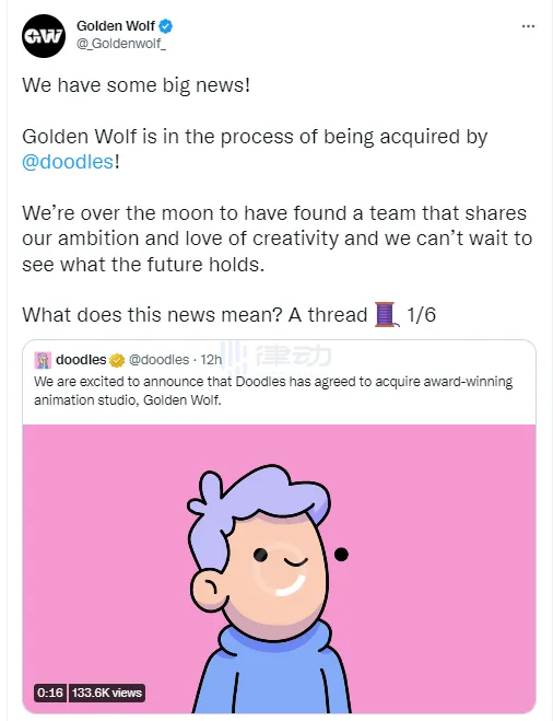 NFT項目Doodles收購動畫工作室Golden Wolf