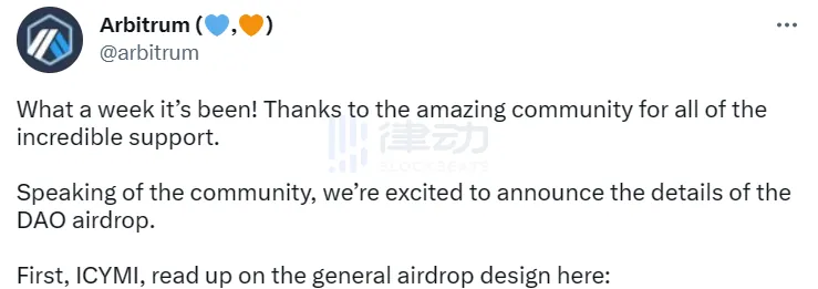 BlockBeats 消息,3 月 21 日,Arbitrum 公布 DAO 空投細則稱,空投的核心原則之一是觸達 Arbitrum 的子社區,只有 Arbitrum 上具有 DAO 和社區金庫的項目才有資格參與此次分發,唯一例外是包含以太坊核心開發人員和貢獻者的集體 Protocol Guild。根據 Arbitrum 公布的名單,共 137 個 DAO 有資格獲得空投。