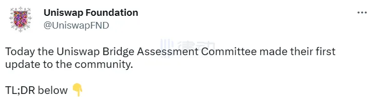 Uniswap Bridge評估委員會已製定初步評估框架,最終報告擬於4月底或5月初提交