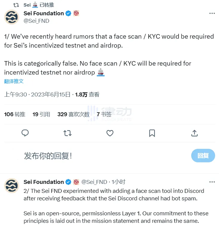 Sei基金會:網傳Sei空投或測試網激勵需要KYC/面部掃描不實