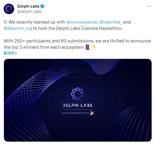 Delphi Labs公布與Osmosis、Injective和Neutron合作舉辦的黑客松獲勝項目名單