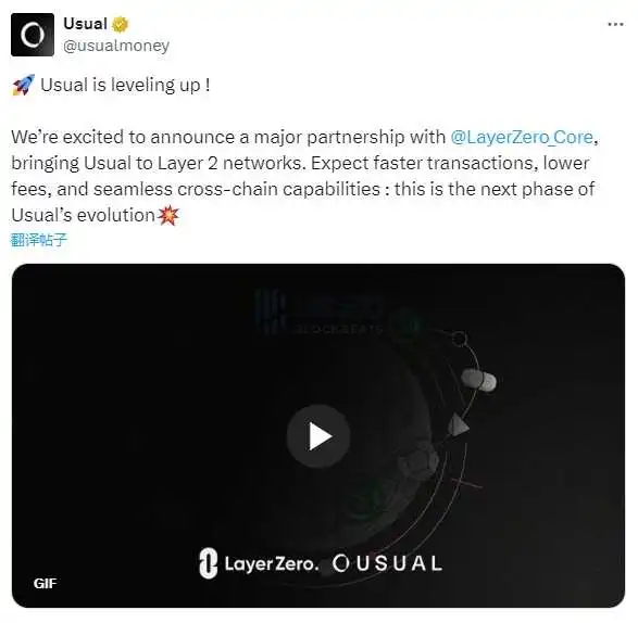 穩定幣協議Usual與LayerZero達成合作,協議將進入Layer 2網絡