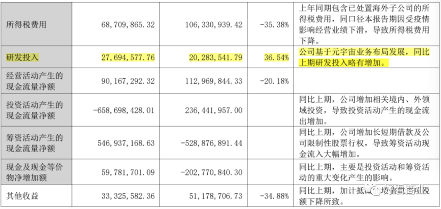 在財報中,元宇宙業務被描述為「穩中向好」,但也導致了成本增加。藍色光標披露,上半年公司基於元宇宙業務布局發展,導致研發投入達到 2769 萬多元,同比增加 36.54%。